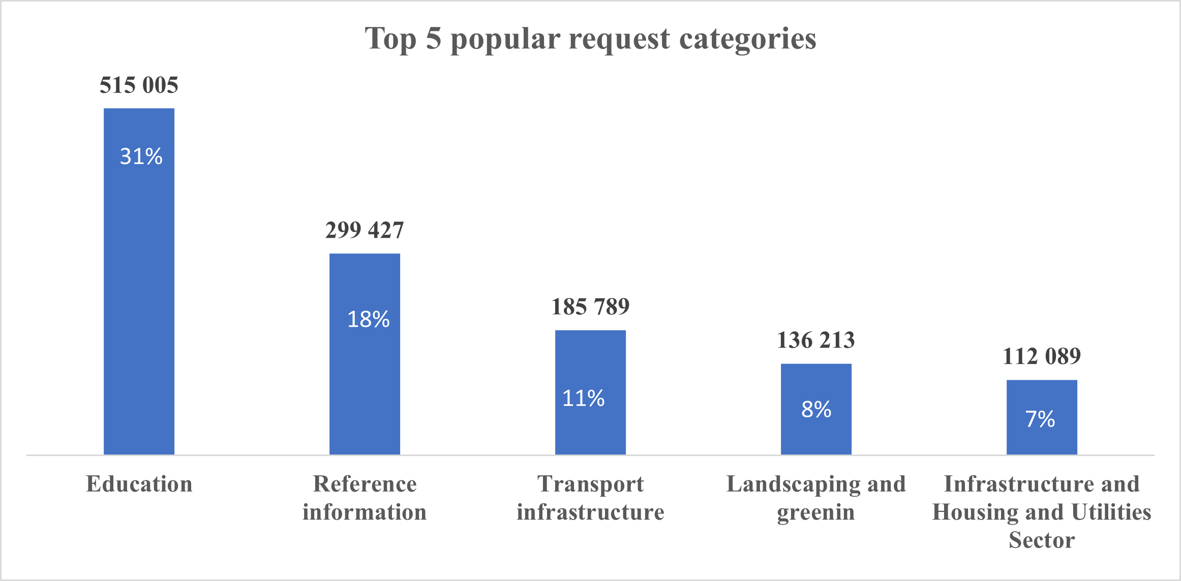 Based on the received requests, the Public Reception prepares detailed analytical reports on the most popular citywide requests of citizens: landscaping; water supply; public transport; lighting, etc.