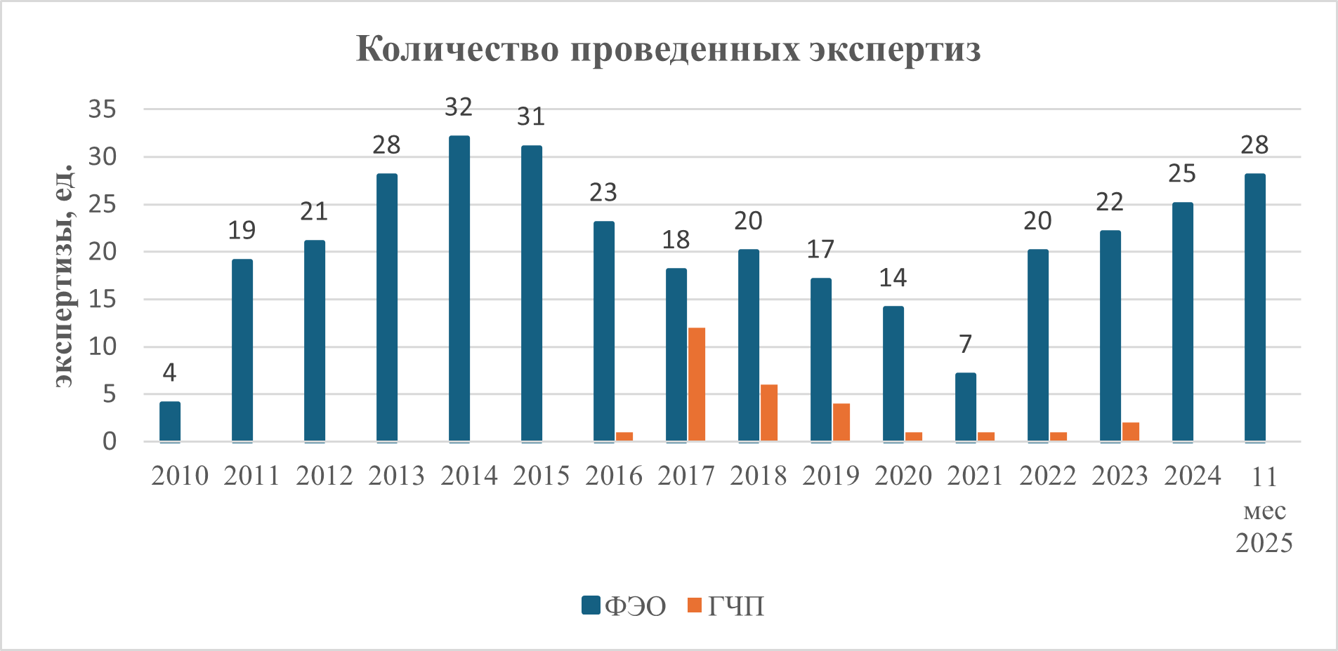 Также ЦРА содействовал росту эффективности проектной деятельности и бюджетных инвестиций. За период 2010 – 11 мес. 2025 гг. Обществом выдано 353 заключения по проектам ФЭО, ТЭО, ГЧП, из них отрицательные заключения выданы по 15 проектам. Кроме того, за период 2010 – 11 мес. 2025 гг. на доработку направлены 27 проектов в связи с необоснованностью инвестиций и наличием собственных средств.