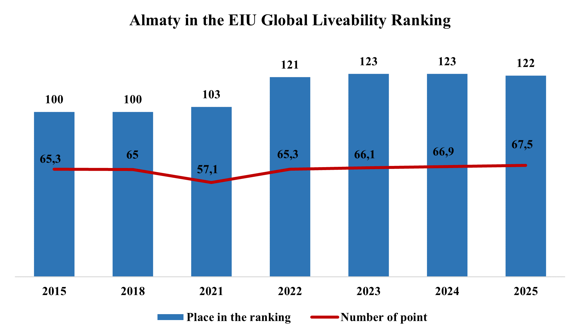 Almaty in the Economist's 'Global Liveability Index' ranking