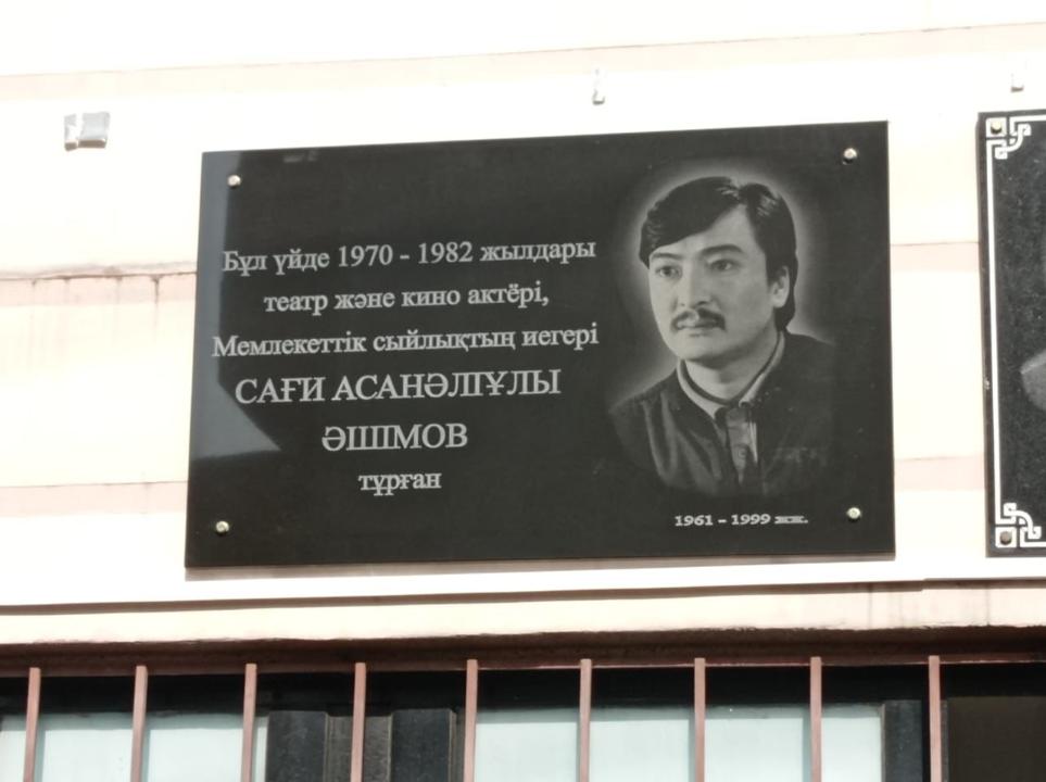 Алматыда театр және кино актері, Мемлекеттік сыйлықтың иегері Әшімов Сағи Асанәліұлының құрметіне арналған мемориалдық тақта салтанатты түрде ашылды. Іс-шараға Алматы қаласы әкімінің орынбасары Арман Қырықбаев, Қазақстанның Еңбек Ері, халық артисі, мемлекеттік сыйлығының лауреаты Асанәлі Әшімов, ҚазКСР халық артисі, ҚазКСР еңбек сіңірген өнер қайраткері Есмұхан Обаев, М. Әуезов атындағы Қазақ ұлттық драма театрының директоры Еркін Жуасбек, Қазақстанның еңбек сіңірген қайраткері Болат Әбділманов, ҚазКСР еңбек сіңірген артисі Жанна Қуанышева, «Қазақфильм» АҚ президенті Азамат Сатыбалды және т.б. қатысты.
