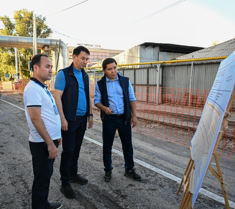 Алматы қаласының әкімі Дархан Сатыбалды жұмыс сапары барысында инженерлік желілердің құрылысы мен қайта жаңғырту жүргізіліп жатқан коммуналдық инфрақұрылым нысандарын аралады.