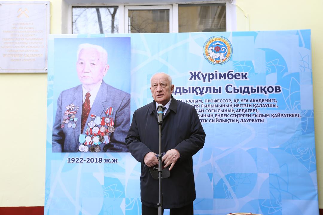 Алматыда көрнекті гидрогеолог-ғалым, гидрогеохимиялық ғылымның негізін қалаушы, Ұлы Отан соғысының ардагері, Қазақстан Республикасының еңбек сіңірген ғылым қайраткері, геология-минералогия ғылымдарының докторы, Қазақстан Республикасы Мемлекеттік сыйлығының лауреаты, ҚР ҰҒА академигі Жүрімбек Сыдықовтың құрметіне мемориалды тақта салтанатты түрде ашылды.