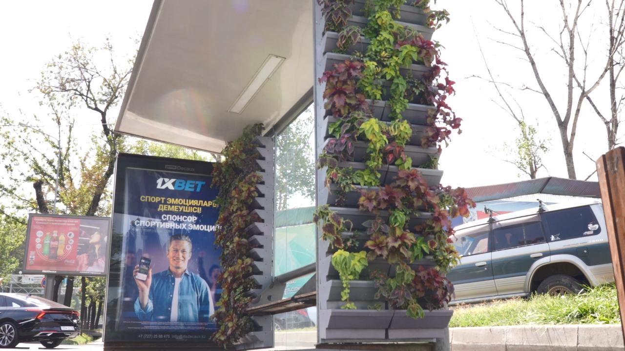 Алматыда автобус аялдамасын және Шығыс айналма автомобиль жолының учаскесін безендіруде тестілік режимде тігінен көгалдандыру әдісі қолданылды. Жалпы көшелер мен түрлі аумақтарды тігінен көгалдандырылады.
