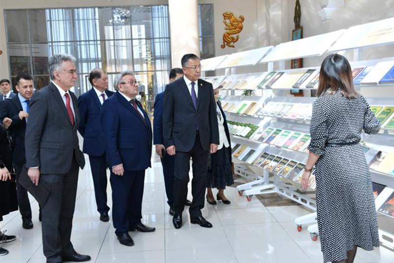 Шараға жиылғандар Әл-Фараби кітапханасындағы қазақстандық фарабитанушылар кітабы қойылған көрмені аралап, «Түркі халықтарының дәстүрлі құндылықтары» атты көркемсурет көрмесін тамашалады.