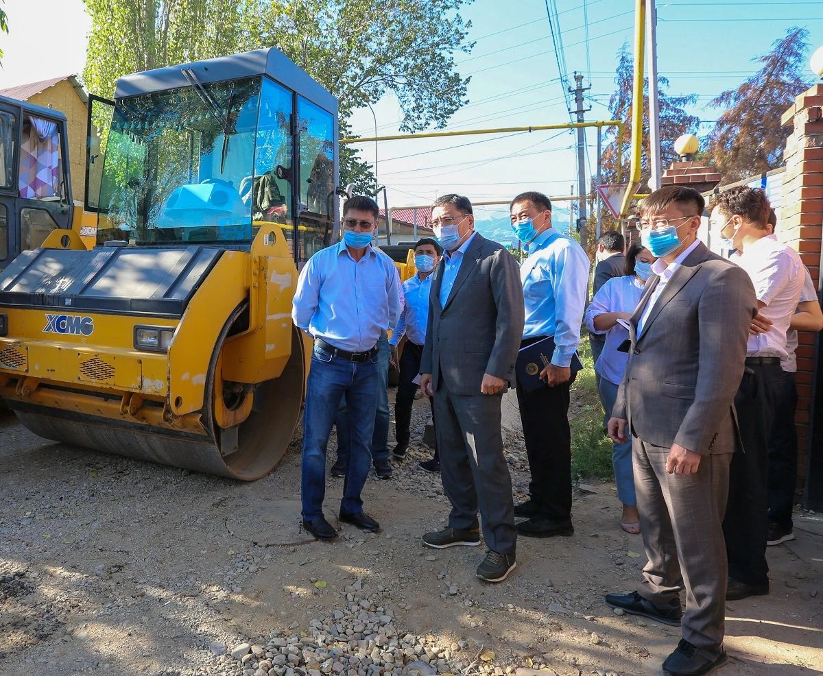 Объезд начался с ознакомления с ходом среднего ремонта дорог в микрорайоне Тастыбулак в Наурызбайском районе, где предусмотрены работы на 6 улицах общей протяженностью 8,6 км.