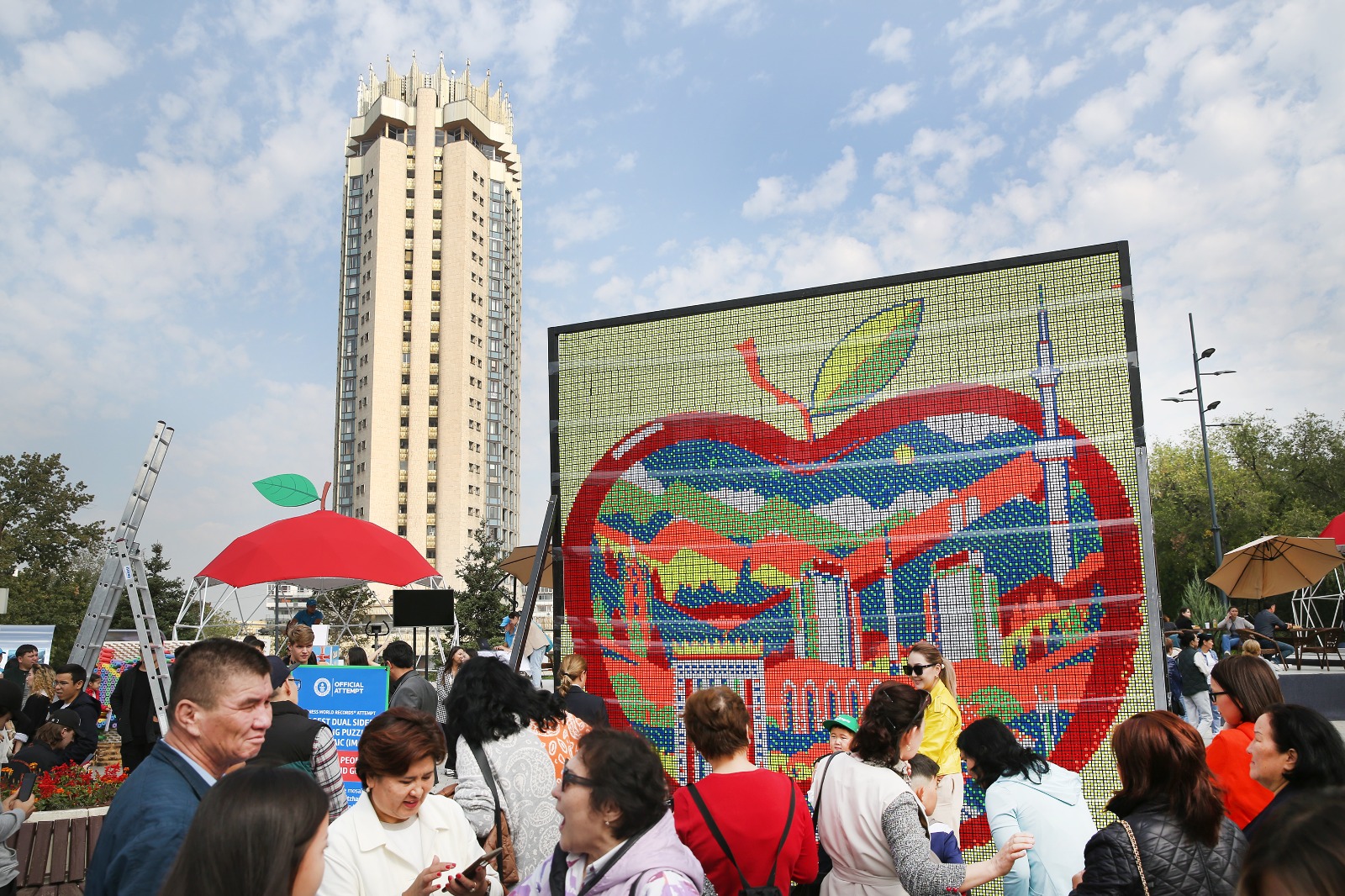 В этом году мозаика была собрана из 5040 кубиков, тем самым попала в Книгу рекордов Гиннесса. Мировой рекорд официально зафиксирован в присутствии представителя Книги рекордов и акима Алматы Ерболата Досаева. Двухстороннюю мозаику собрали во время празднования Дня города Алматы.