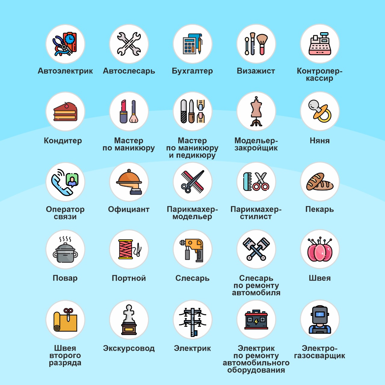 Безработные жители города могут повысить свою квалификацию, получить новую специальность или пройти переподготовку на курсах по 25 специальностям, среди которых такие востребованные профессии, как швея, автослесарь, оператор связи и другие. Полный перечень специальностей: