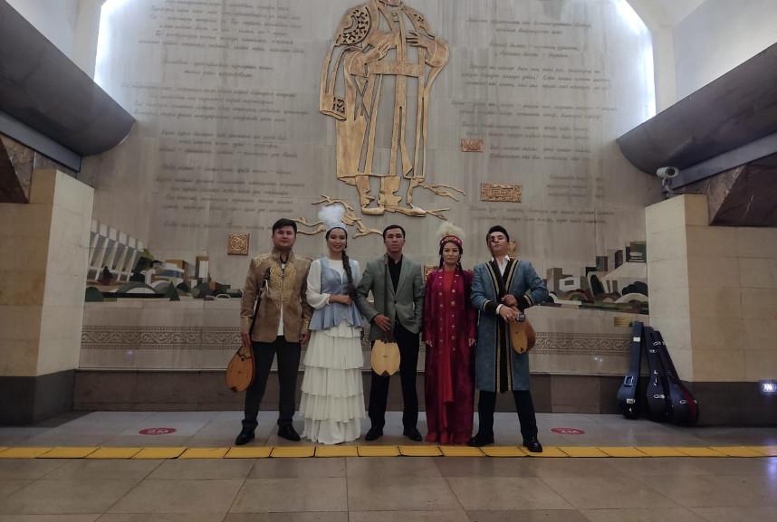 День Абая отмечают в Алматы. По случаю этой знаменательной даты, артисты театра традиционного искусства «Алатау» спустились в метро и исполнили произведения великого поэта под аккомпанемент музыкальных инструментов.