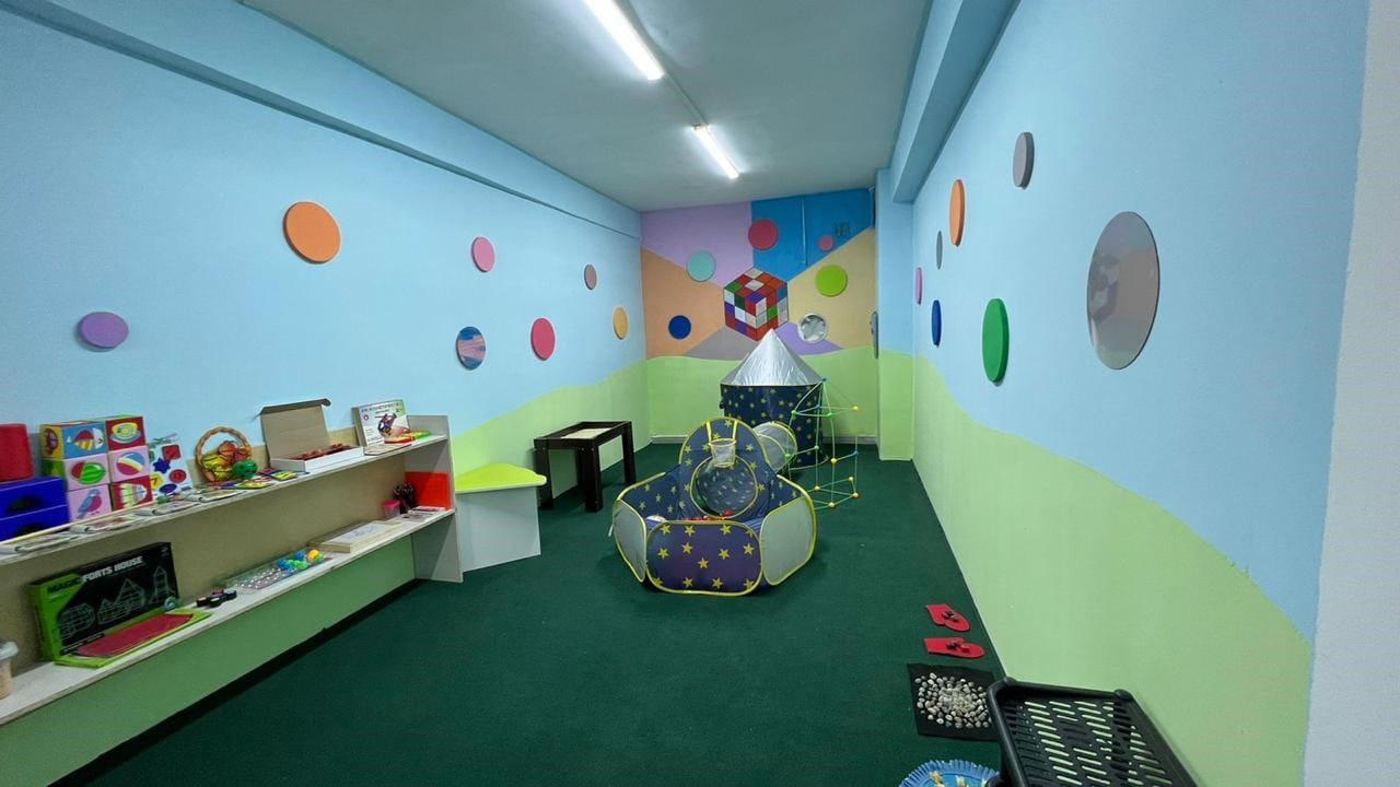 В этом развивающем центре, где обучаются 145 детей, имеются 9 кабинетов. Каждый зал направлен на развитие творческих способностей детей: инклюзия, Монтессори, библиотека, лаборатория, художественная комната, соляная шахта, а также классы, где работают логопед и психолог.