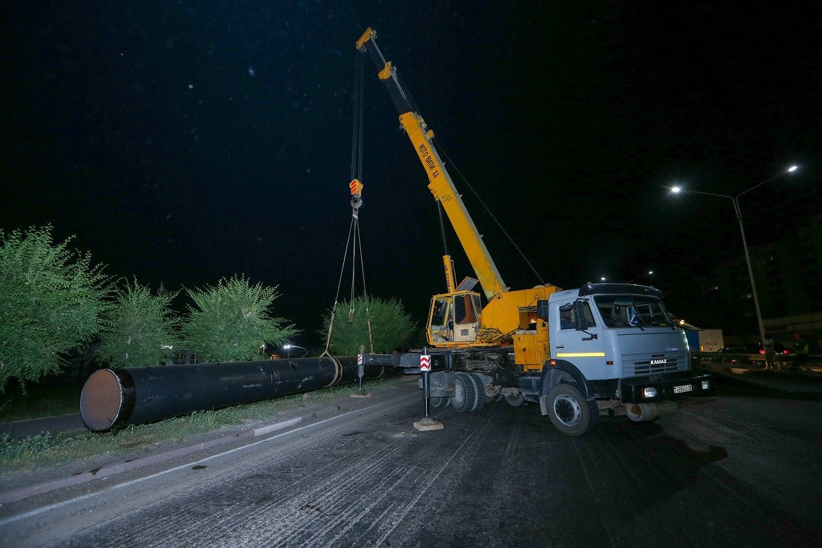 По северной части проспекта Райымбека проведены работы по укладке двух водоотводных трубчатых переходов диаметром 1 метр, которые будут функционировать для отвода талых вод, поступающих с улиц Яссауи и Б. Момышулы. На участке будут установлены приемные камеры на разделительной полосе проспекта Райымбека. Также трубчатый переход улицы Яссауи будет соединен с существующим водоотводным коллектором, а трубчатый переход улицы Б. Момышулы будет соединен с существующей отводной системой развязки Райымбека – Б. Момышулы.