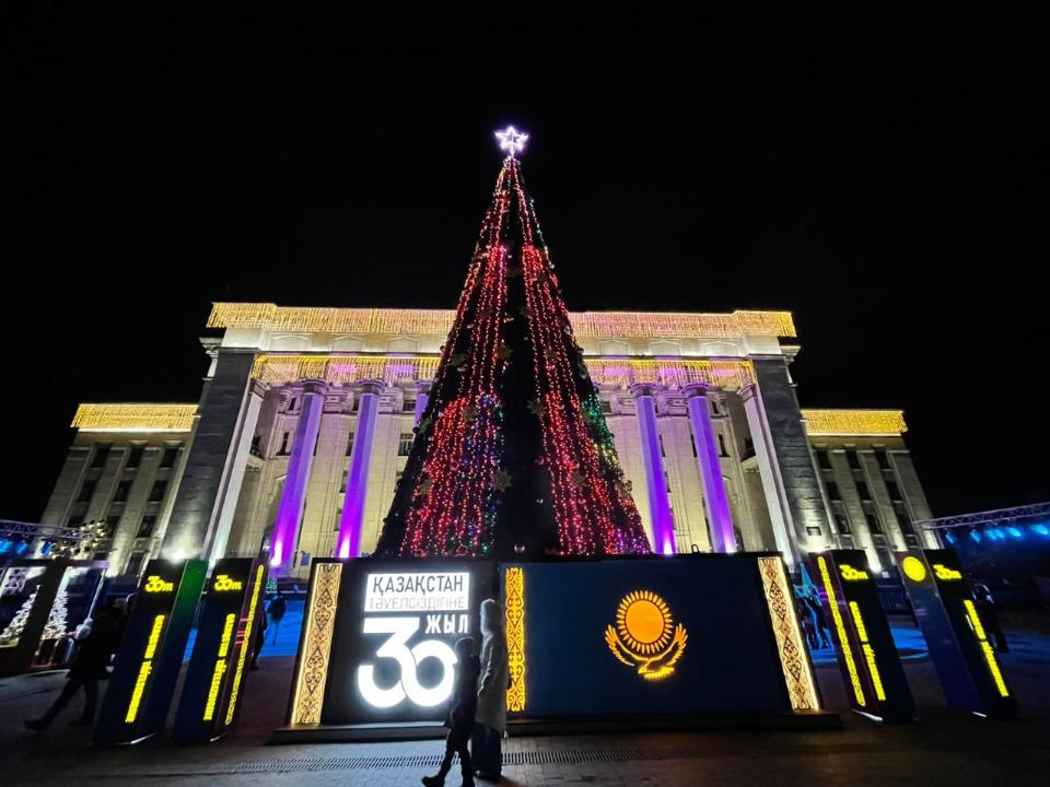 Высота главного символа Нового года составляет 20 метров. В торжественной церемонии зажжения Главной елки Алматы принял участие заместитель акима мегаполиса Ержан Бабакумаров.