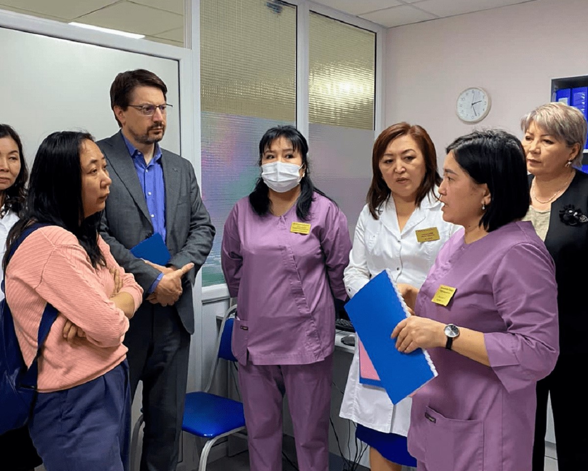 Региональный советник ЮНИСЕФ Габриель Фонтана из Женевы и республиканские координаторы по УПМП на базе Городской поликлиники №26 ознакомились с работой универсальной прогрессивной модели патронажного обслуживания беременных женщин и семей с детьми до 5 лет.